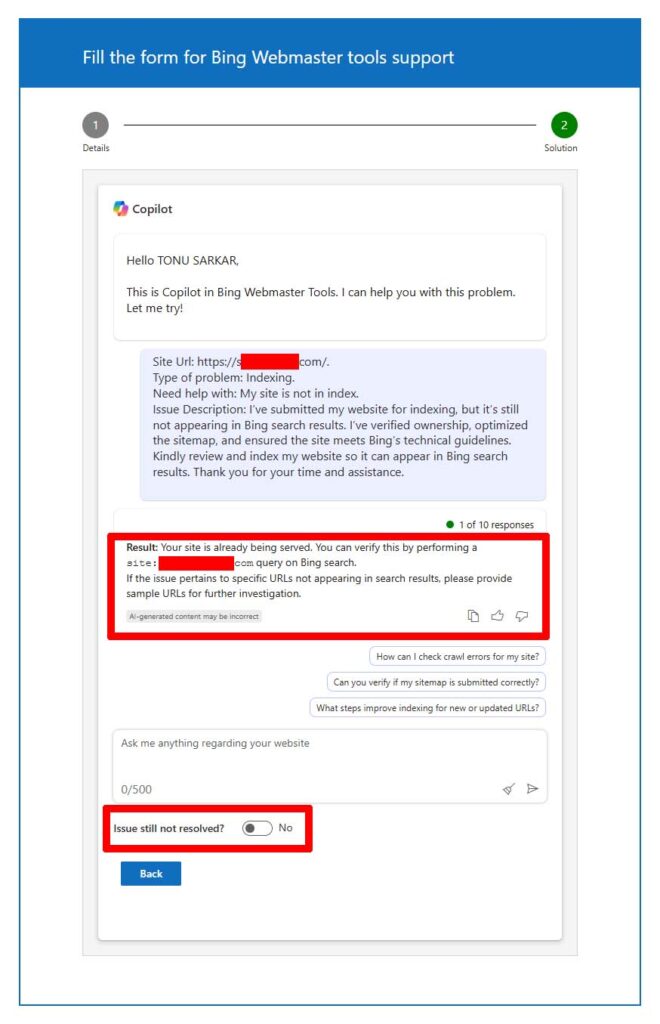 Step-4: On the next page, Bing’s AI will try to help you solve the problem automatically.